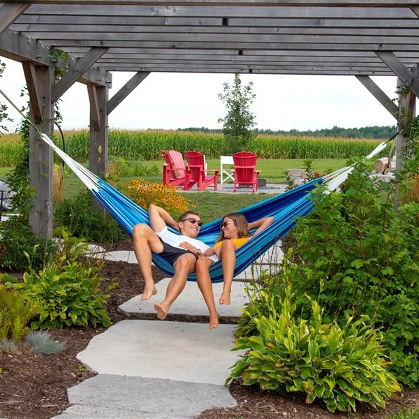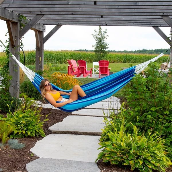 Double size hammock by Vivere offered in a beautiful blue colour.