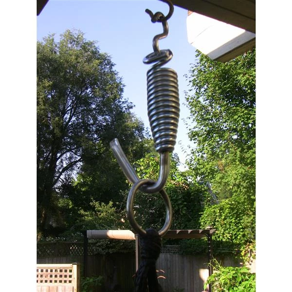 Added comfort is easily accomplished with the addition of the Vivere Spring. Once a hammock Hook is securely positioned, attach a Spring to the hook and proceed to loop the hammock or hammock chair onto the spring. Relax in your hammock and enjoy the added comfort the Vivere spring offers. Capacity 250 lbs